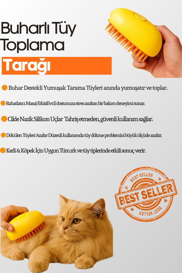 🟡Evcil dostunuzun tüy bakımını kolaylaştıran bu çok fonksiyonlu buharlı kedi & köpek tüy toplama tarağı, dökülen ve uçuşan tüyleri hızla temizlerken aynı zamanda tüyleri yumuşatır ve düğümlenmeyi azaltır. Her gün daha sağlıklı ve parlak bir tüy görünümü elde etmenizi sağlar.